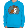 1 kép PRINTFASHION Corgi mindenek felett - Gyerek kapucnis pulóver - Azúrkék