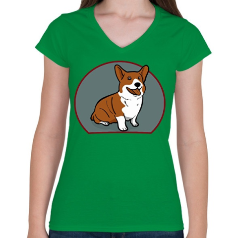 1 kép PRINTFASHION Corgi mindenek felett - Női V-nyakú póló - Zöld