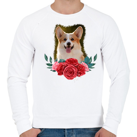 1 kép PRINTFASHION Corgi virággal - Férfi pulóver - Fehér