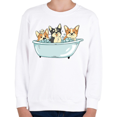 1 kép PRINTFASHION Corgik a kádban - Gyerek pulóver - Fehér