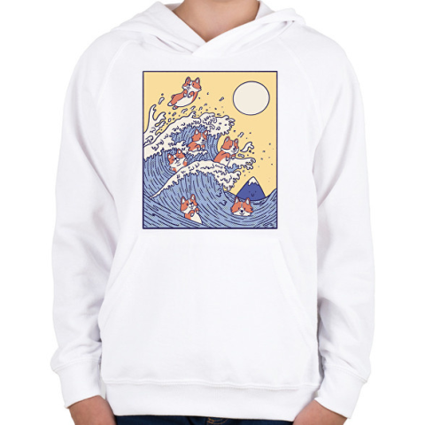 1 kép PRINTFASHION Corgik - Gyerek kapucnis pulóver - Fehér