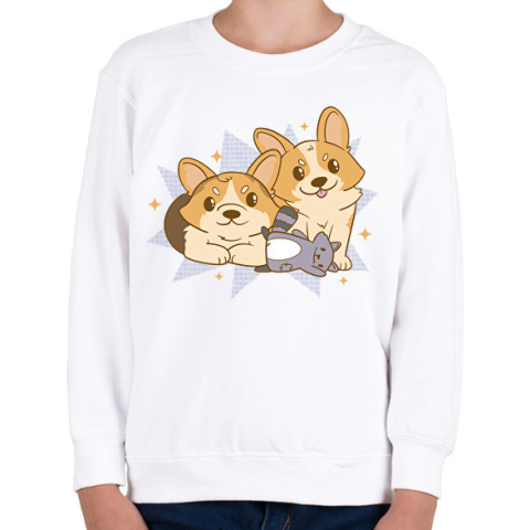 1 kép PRINTFASHION Corgik - Gyerek pulóver - Fehér