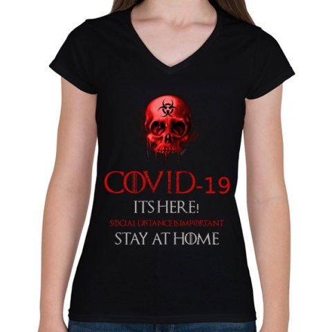 1 kép PRINTFASHION covid 19 its here - Női V-nyakú póló - Fekete