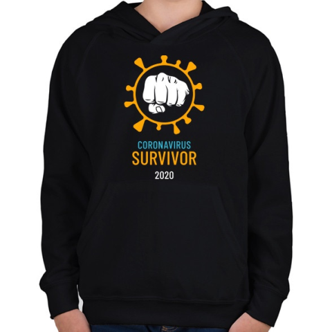 1 kép PRINTFASHION Covid Survivor - Gyerek kapucnis pulóver - Fekete