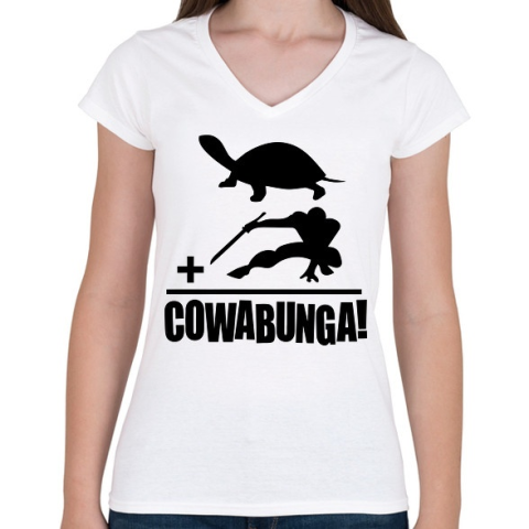 1 kép PRINTFASHION Cowabunga 2 - Női V-nyakú póló - Fehér