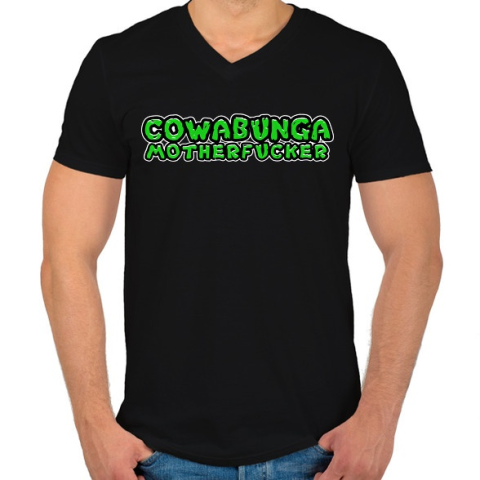 1 kép PRINTFASHION Cowabunga motherf - Férfi V-nyakú póló - Fekete