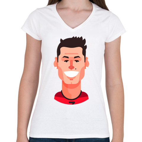 1 kép PRINTFASHION Cristiano Ronaldo - Női V-nyakú póló - Fehér