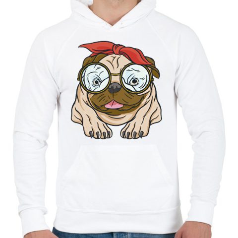 1 kép PRINTFASHION Csajos mopsz - Férfi kapucnis pulóver - Fehér