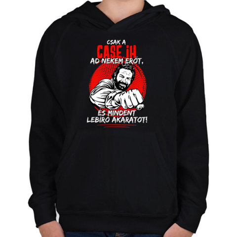 1 kép PRINTFASHION Csak a case ih ad nekem erőt - Gyerek kapucnis pulóver - Fekete