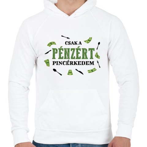 1 kép PRINTFASHION Csak a pénzért pincérkedem - Férfi kapucnis pulóver - Fehér