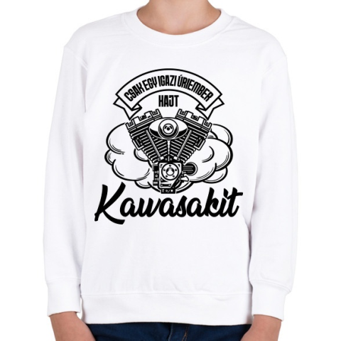 1 kép PRINTFASHION Csak egy igazi úriember hajt Kawasakit - Gyerek pulóver - Fehér