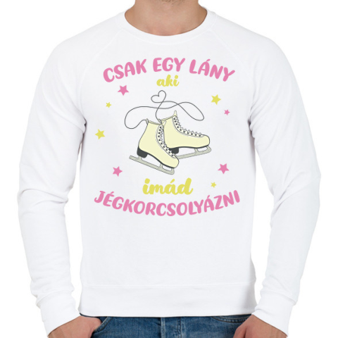 1 kép PRINTFASHION Csak egy lány aki imád jégkorcsolyázni - Férfi pulóver - Fehér