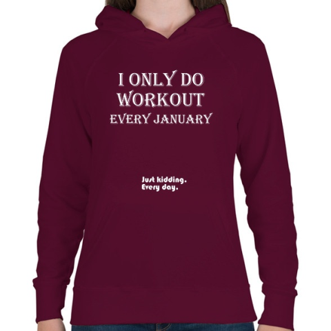 1 kép PRINTFASHION Csak januárban megyek edzeni. Vicceltem, minden nap. - Női kapucnis pulóver - Bordó