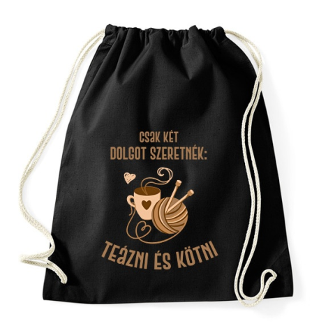 1 kép PRINTFASHION Csak két dolgot szeretnék: Teázni és kötni - Sportzsák, Tornazsák - Fekete