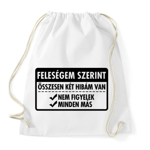 1 kép PRINTFASHION Csak két hibám van... - Sportzsák, Tornazsák - Fehér