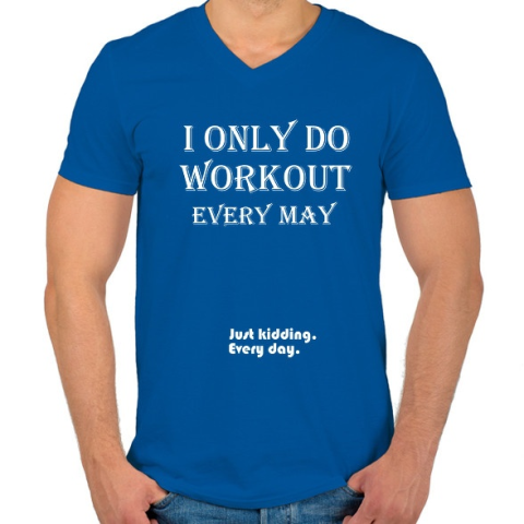 1 kép PRINTFASHION Csak májusban megyek edzeni. Vicceltem, minden nap. - Férfi V-nyakú póló - Királykék