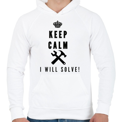 1 kép PRINTFASHION Csak nyugi én megoldom!(SZERELŐ) - Férfi kapucnis pulóver - Fehér