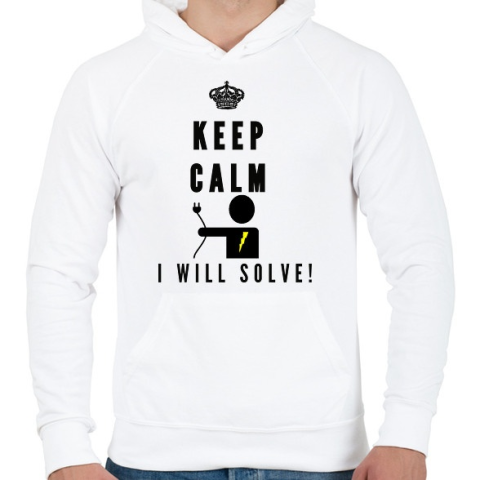 1 kép PRINTFASHION Csak nyugi én megoldom!(villanyszerelő) - Férfi kapucnis pulóver - Fehér