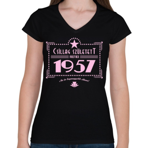 1 kép PRINTFASHION csillag-1957-pink - Női V-nyakú póló - Fekete