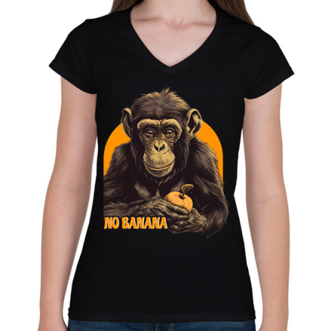 1 kép PRINTFASHION Csimpánz és az alma - Női V-nyakú póló - Fekete