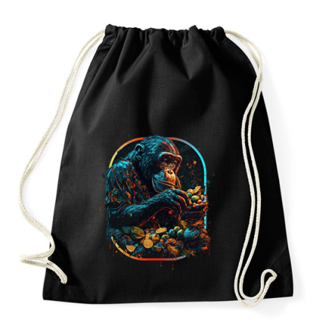 1 kép PRINTFASHION Csimpánz gyümölcsöt eszik - Sportzsák, Tornazsák - Fekete