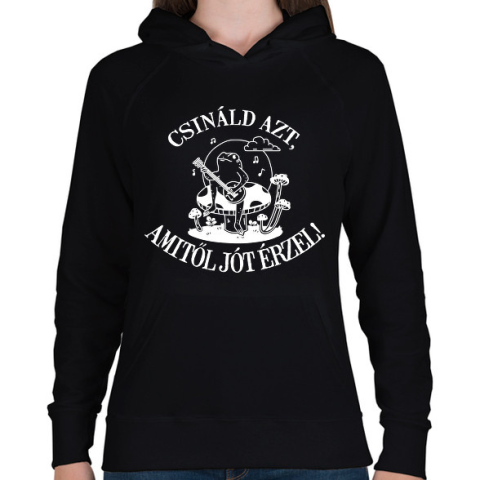 1 kép PRINTFASHION Csináld azt, amitől jót érzel! - Női kapucnis pulóver - Fekete