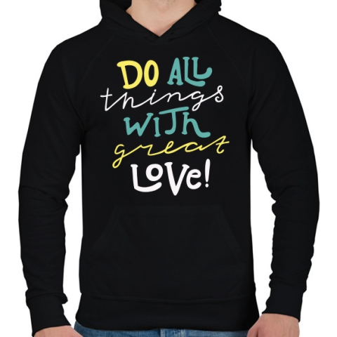 1 kép PRINTFASHION Csinálj mindent szívből! - Férfi kapucnis pulóver - Fekete
