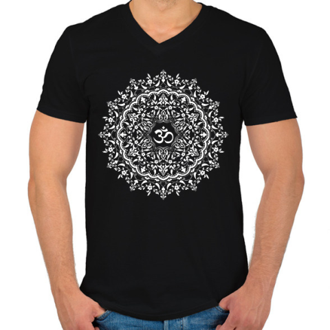 1 kép PRINTFASHION Csipkés mandala - Férfi V-nyakú póló - Fekete