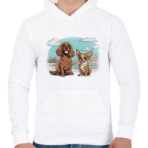 1 kép PRINTFASHION Csivava és spániel - Férfi kapucnis pulóver - Fehér