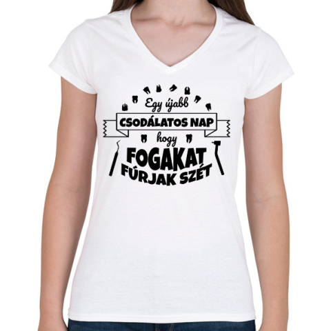 1 kép PRINTFASHION Csodálatos nap - Fogorvos - Női V-nyakú póló - Fehér
