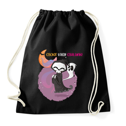 1 kép PRINTFASHION Csokit vagy csalunk halloween csontváz - Sportzsák, Tornazsák - Fekete