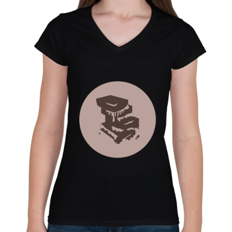 1 kép PRINTFASHION csokoládé - Női V-nyakú póló - Fekete