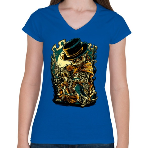 1 kép PRINTFASHION Csont bandita - Női V-nyakú póló - Királykék