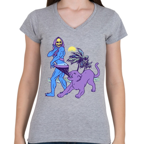 1 kép PRINTFASHION Csontváz a tengerparton - Női V-nyakú póló - Sport szürke
