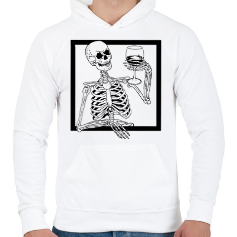 1 kép PRINTFASHION Csontváz borral - Férfi kapucnis pulóver - Fehér