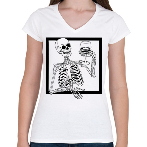 1 kép PRINTFASHION Csontváz borral - Női V-nyakú póló - Fehér