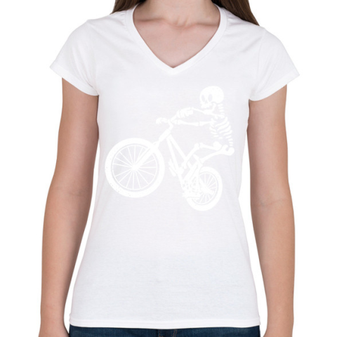 1 kép PRINTFASHION Csontváz bringás - Női V-nyakú póló - Fehér