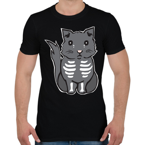 1 kép PRINTFASHION csontváz cica - Férfi póló - Fekete