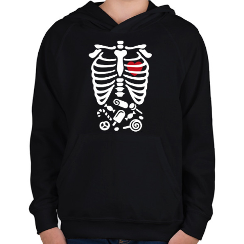 1 kép PRINTFASHION Csontváz - Gyerek kapucnis pulóver - Fekete