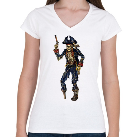 1 kép PRINTFASHION Csontváz Kalóz - Női V-nyakú póló - Fehér