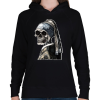 1 kép PRINTFASHION (Csontváz) Leány gyöngy fülbevalóval - Női kapucnis pulóver - Fekete