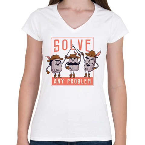 1 kép PRINTFASHION Ctrl, Alt, Del - Női V-nyakú póló - Fehér