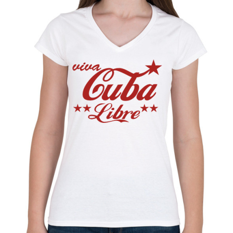 1 kép PRINTFASHION Cuba libre - Női V-nyakú póló - Fehér