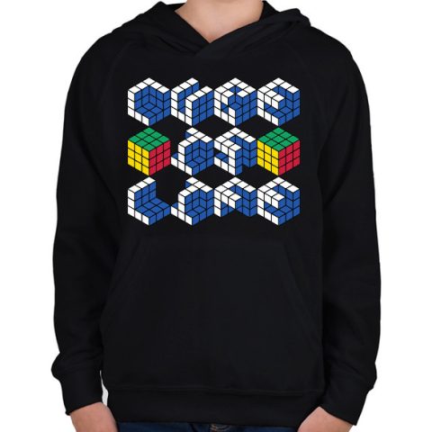 1 kép PRINTFASHION Cube id life - Gyerek kapucnis pulóver - Fekete