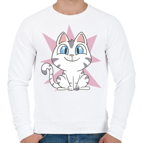 1 kép PRINTFASHION Cuki cica - Férfi pulóver - Fehér