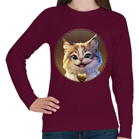 1 kép PRINTFASHION Cuki Cica - Női pulóver - Bordó