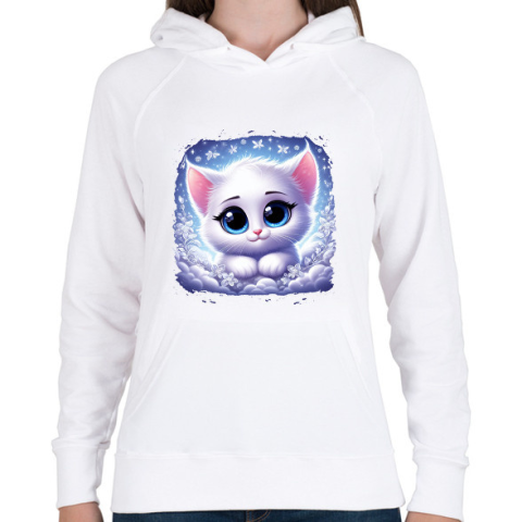 1 kép PRINTFASHION Cuki cicus - Női kapucnis pulóver - Fehér