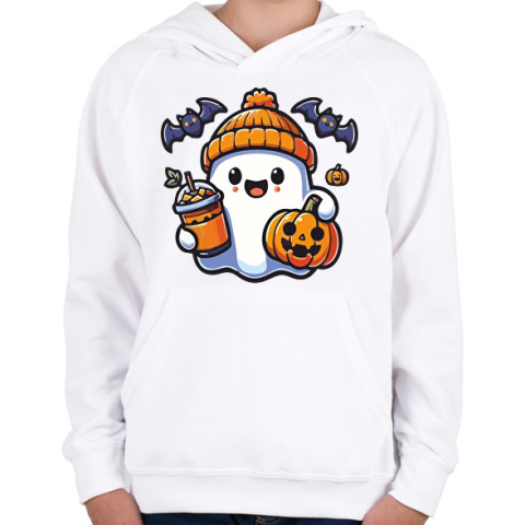 1 kép PRINTFASHION Cuki halloween szellem - Gyerek kapucnis pulóver - Fehér