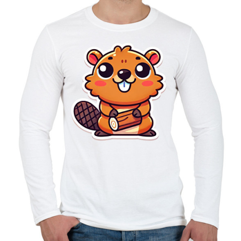 1 kép PRINTFASHION Cuki hód - Férfi hosszú ujjú póló - Fehér