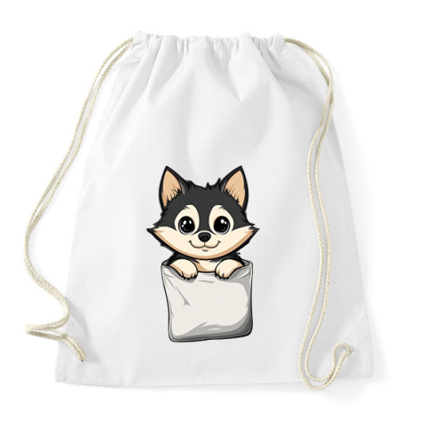 1 kép PRINTFASHION Cuki Husky Zsebben - Sportzsák, Tornazsák - Fehér